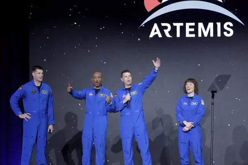 This is the first moon crew to include someone from outside the U.S. — and the first crew in NASA's new moon program named Artemis after the twin sister of mythology's Apollo. Late last year, an empty Orion capsule flew to the moon and back in a long-awaited dress rehearsal.