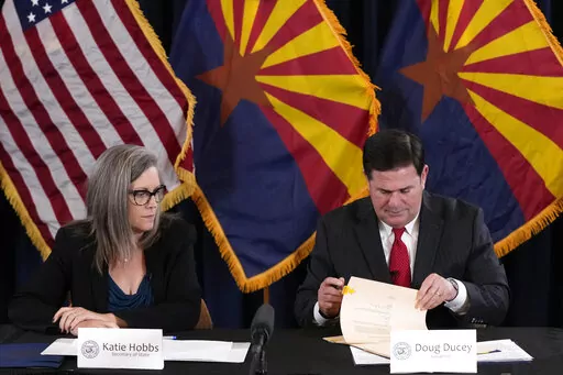 Democrat Katie Hobbs is becoming governor, but a Republican-controlled Legislature will limit her ability to undo much of what Ducey enacted. Ducey's preferred successor, businesswoman Karrin Taylor Robson, lost the GOP primary to Trump-backed former television anchor Kari Lake, who rose to prominence on the right as a fierce proponent of Trump's election lies.