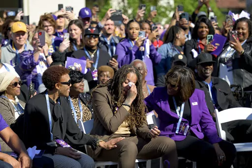 BATON ROUGE, La. (AP) — Seimone Augustus gazed up at the bronze likeness of her in front of LSU's basketball training center and began wiping away tears.