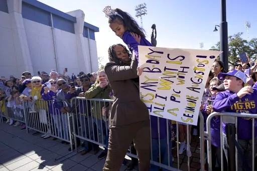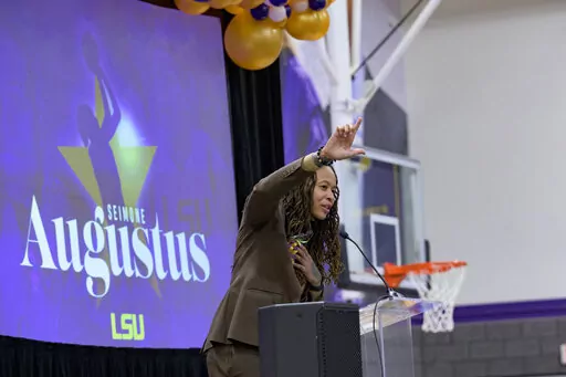 “I'm still trying to process this,” Augustus said as she addressed the crowd shortly before fifth-ranked LSU hosted Auburn in the nearby Pete Maravich Assembly Center. “It looks like the whole of Baton Rouge is out here. But this feels good.