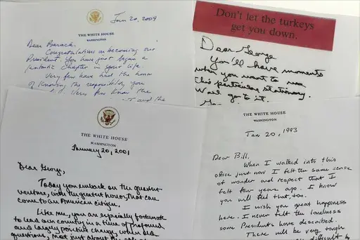 He did that for George H.W. Bush, his successor and vice president of eight years. Bush did the same for Bill Clinton, who left a note for Bush's son, George W. The younger Bush left behind written words for Barack Obama, who later put pen to paper for Donald Trump.