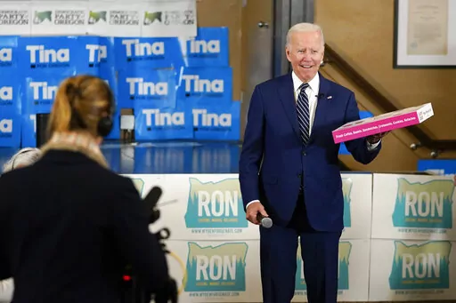 PORTLAND, Ore. (AP) — President Joe Biden strode into the telephone bank at a crowded union hall and eagerly began making calls and eating doughnuts — one frosted, one glazed — as he tries every page in the political playbook to deliver votes for Democrats.