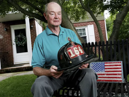 Wearing his old firefighter helmet from Ladder Company 164 in Queens, the Long Island resident stood with President George W. Bush as he delivered a rousing speech to weary responders three days after hijackers crashed airplanes into the twin towers of the old World Trade Center, killing 2,753 people.