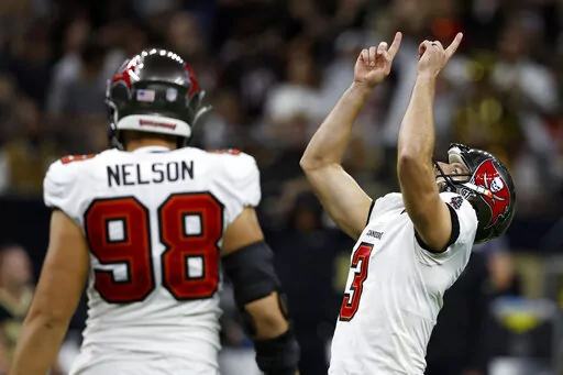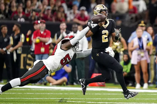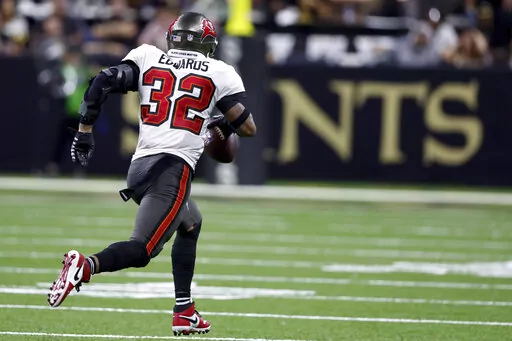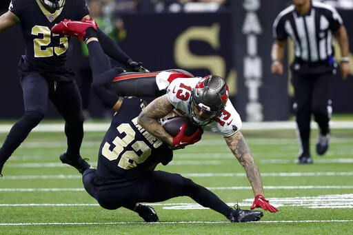 The Bucs' defense squelched the Saints' comeback bid by intercepting Jameis Winston three times in the final 12 minutes. Jamel Dean made the first two picks — one on a deep pass intended for rookie Chris Olave at the goal line. Later, safety Mike Edwards returned an interception near the right sideline 68 yards for a touchdown to make it 20-3.