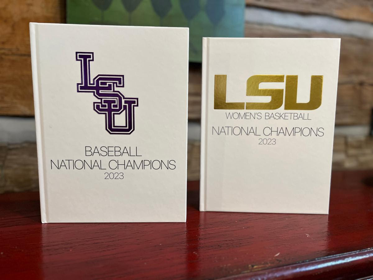 The official titles of the publications — the only championship books officially licensed by LSU Sports — are LSU Women’s Basketball National Champions 2023 and LSU Baseball National Champions 2023.