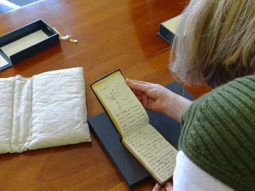 On March 9 the books reappeared, left in a public area of the building, outside the librarian’s office, which is not covered by security cameras. The two notebooks were wrapped in clingfilm inside their archive box, and appeared undamaged. The accompanying note said: “Librarian Happy Easter X.”