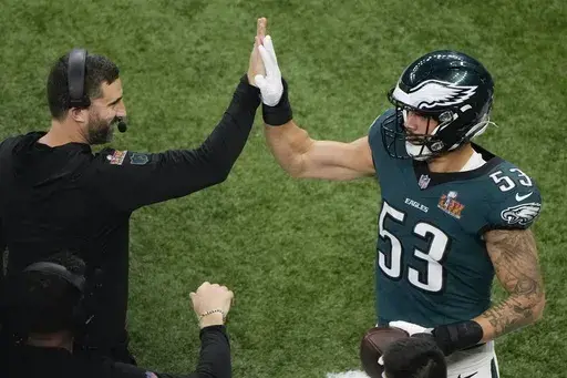 NEW ORLEANS (AP) — Cooper DeJean took an interception to the house, Zack Baun made a pick in his old professional home and the Eagles so thoroughly thrashed Patrick Mahomes that by the time Kendrick Lamar had “Game Over” brightened in the Superdome stands to end his halftime set, it was just as clear that, so too, was the Super Bowl.