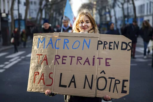 PARIS (AP) — The French government is presenting a bill on Monday that foresees broad changes to the pension system that will notably push back the legal retirement age from 62 to 64.