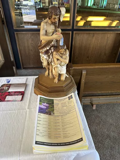 A stack of church bulletins sat unused just outside the sanctuary — with a note from Gutgsell about how he had planned to preach about St. John the Baptist’s namesake on Sunday. On the way into town, the lighted sign along the highway welcoming visitors to Fort Calhoun asked for “prayers for our church and our community.”