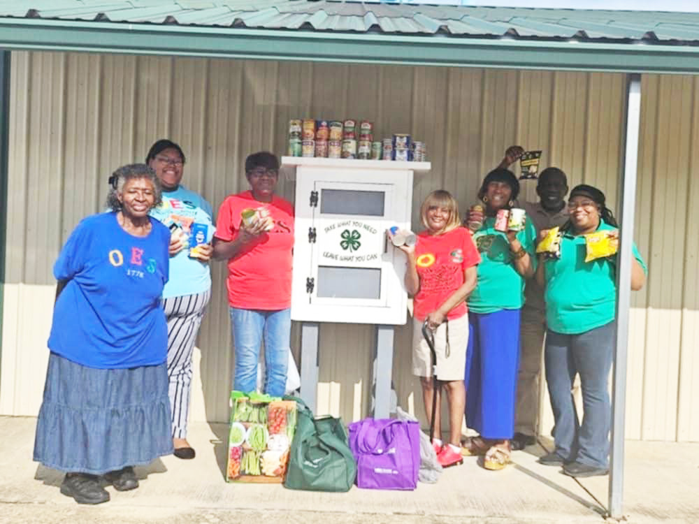 The project was launched with canned goods collected during a 4-H food drive in April and stocked by members for the month of May. Since then, outside groups have helped keep the box supplied, including Flower’s Palace #70, Order of the Eastern Star, which provided items for June.