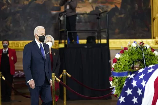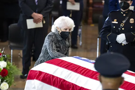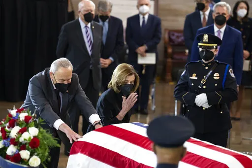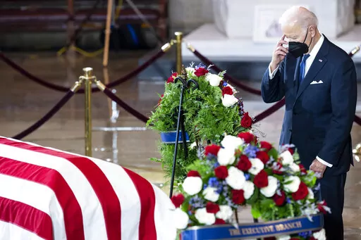 Vice President Kamala Harris did not speak during the ceremony, but paused at the casket in tribute, as did the Republican leaders in Congress, Sen. Mitch McConnell of Kentucky and Rep. Kevin McCarthy of California. Later, Justices Sonia Sotomayor and Elena Kagan stopped by, as did some Cabinet and administration officials.