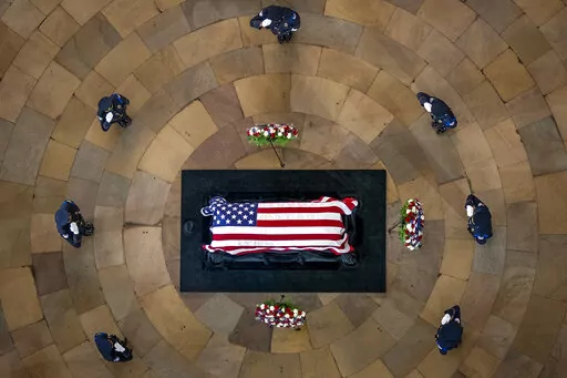 The service was largely closed to the public under COVID-19 protocols, though former colleagues, staff and others streamed in to visit, most wearing masks. He was only the 15th senator have to had the honor; his casket rested on the catafalque used for Abraham Lincoln.