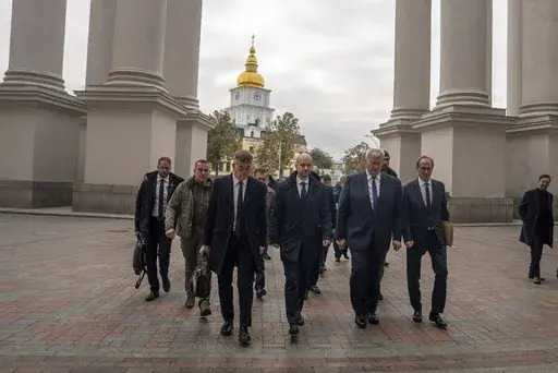 KYIV, Ukraine (AP) — France's foreign minister pledged his support for Ukraine’s plan for ending the war with Russia, telling reporters in Kyiv on Saturday that he would work with Ukrainian officials to secure other nations’ backing for the proposal.