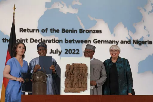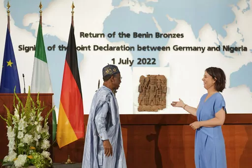 Officials didn't give a timeline for the return of the remaining artifacts on Friday, but Berlin's Ethnological Museum said a agreement on the rest of the bronzes it holds will follow later this year. The authority that oversees the museum says it expects to keep some on long-term loan. Baerbock said she is looking forward to seeing bronzes “on holidays in Germany.”