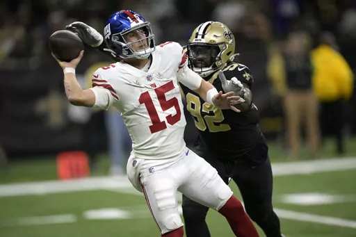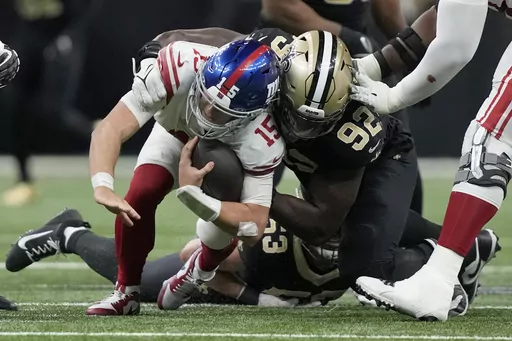The Saints limited running back Saquon Barkley to 14 yards on nine carries. The Giants converted just 2 of 16 third downs. New York’s only points were on field goals at the end of their first and last drives of the opening half, and both came courtesy of Saints penalties.