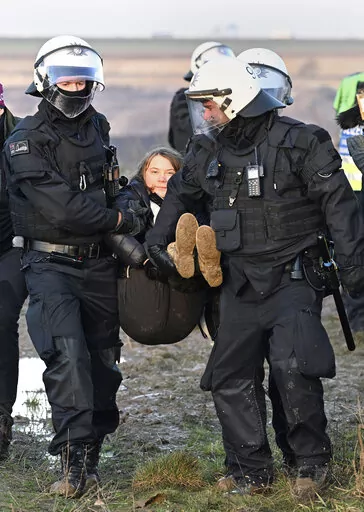 BERLIN (AP) — Police in western Germany carried Swedish climate activist Greta Thunberg and other protesters away Tuesday from the edge of an open coal pit mine where they demonstrated against the ongoing destruction of a village to make way for the mine's expansion, German news agency dpa reported.