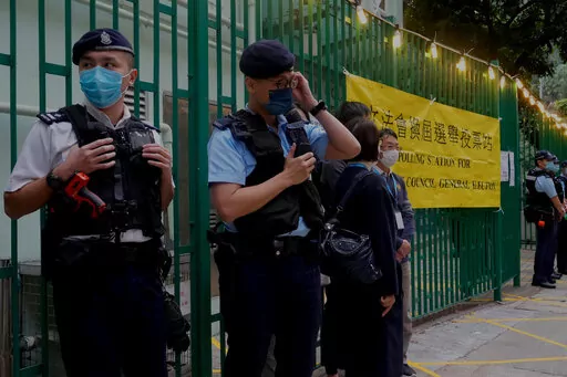 Heavy police presence surrounded polling stations Sunday. Police chief Raymond Siu said about 10,000 officers would be deployed to make sure the election proceeded smoothly.
