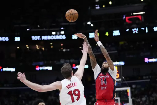 That helped the Raptors briefly cut their deficit to 12 before New Orleans took a 67-50 lead into halftime.