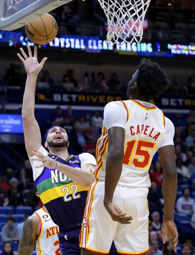 Pelicans: All-Star forward Zion Williamson (right hamstring) missed his 19th straight game. Green said Williamson continued to be “day to day” and that it was unclear whether he would play before the All-Star break. ... Outscored Atlanta in the paint, 56-40. ... Converted 13 offensive rebounds into 22 second-chance points.