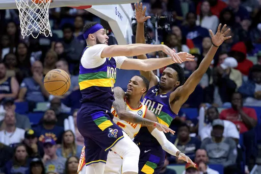 Atlanta then fouled Herb Jones, who hit two free throws and then blocked Bogdan Bogdanovic's 3-pointer to help the Pelicans hold on.