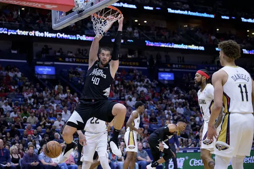 Clippers: Eric Gordon, who had 13 points in 16 minutes in Memphis on Friday, was scratched from the lineup in New Orleans because of tightness in his right hip. ... Leonard was 15 of 28 shooting, including 4 of 8 from 3. He also made all six of his free throws. ... Los Angeles shot 49.4%, including 11 of 29 from deep.