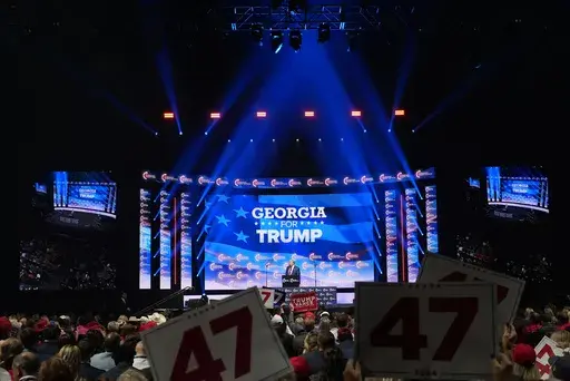 DULUTH, Ga. (AP) — No scene has dominated U.S. politics since 2015 quite like Donald Trump on stage, waxing on for an hour-plus in front of a chorus of red “Make America Great Again” hats.