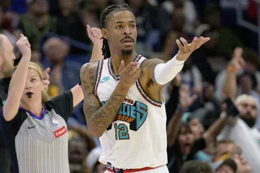 Morant left the court shoeless. The man with his own Nike Ja 1 shoe played in a pair decorated to honor New Orleans with the title of a local song on the back that Morant danced to during a win over the Pelicans in December 2023. He autographed the shoes for the song's artist.