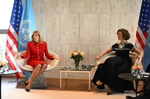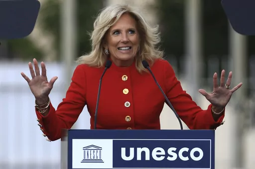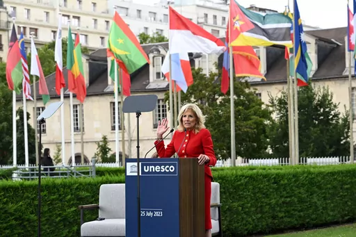 PARIS (AP) — U.S. first lady Jill Biden attended a flag-raising ceremony at UNESCO in Paris on Tuesday, marking Washington's official reentry into the U.N. agency after a controversial five-year hiatus.