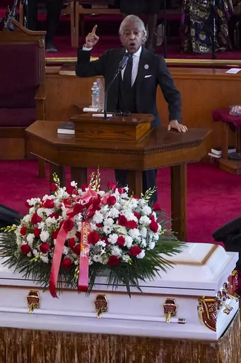 Sharpton, standing in front of a white casket with a flower arrangement on top, also condemned government policies and social service systems that he said had let Neely down and needed to be reformed.