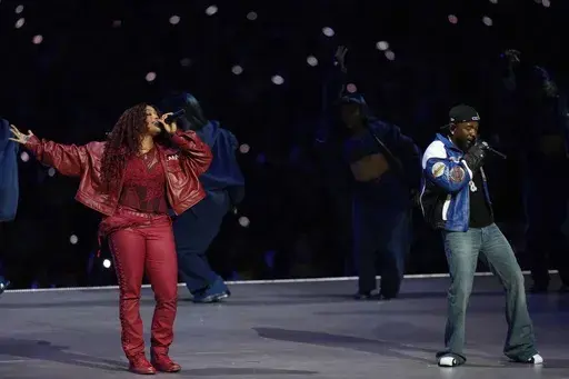 Lamar’s groundbreaking halftime show — he was the first solo hip-hop performer to headline the coveted halftime slot — was awash in patriotic imagery with dancers in red, white and blue. Samuel L. Jackson, playing Uncle Sam, guided Lamar and viewers through the performance. SZA joined Lamar onstage for part of his performance.