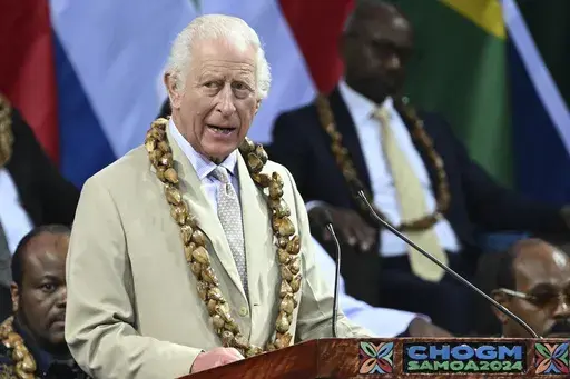 The British monarch told leaders in Apia that he understood “the most painful aspects of our past continue to resonate." But Charles stopped short of mentioning financial reparations that some leaders at the event have urged, and instead exhorted them to find the “right language” and an understanding of history “to guide us towards making the right choices in future where inequality exists."