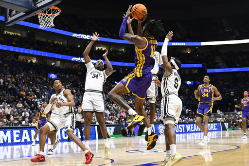 KJ Williams scored 16 of his 26 points in the second half to lead No. 14 seed LSU (14-19), which shot 33% (23 of 69) from the floor but matched Vanderbilt in rebounds with 42.