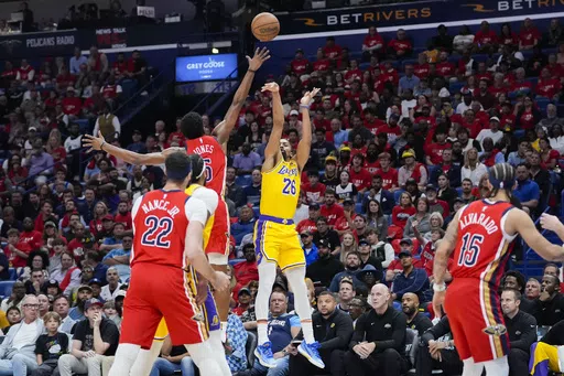 Soon after Williamson went out, James hit a jumper, Davis dunked Austin Reaves' alley-oop lob, DeAngelo Russell hit a 3 and Davis grabbed a crucial offensive rebound, after which he hit two free throws to help the Lakers hold on.