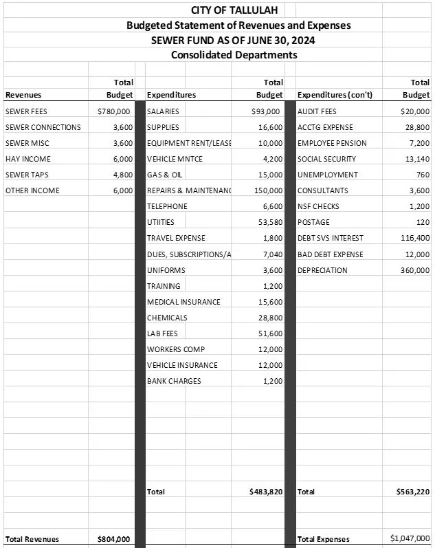 An Ordinance to Adopt the Municipal Budgets for the City of Tallulah for the Fiscal Year Beginning July 1, 2023, and Ending June 30, 2024.