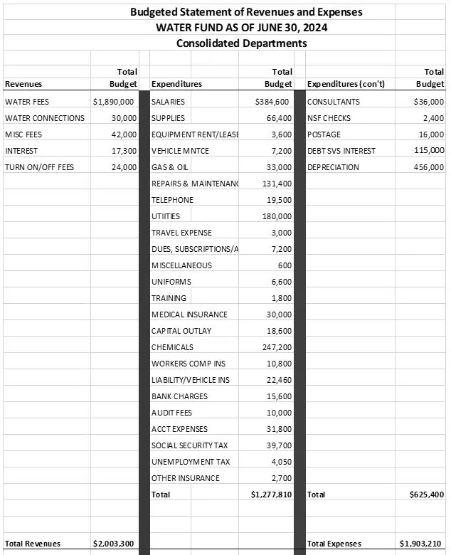 On June 8, 2023, at a public hearing, 5:30 P.M., City Hall, Mayor Charles Finlayson requested that the City Council approve his General Fund, 2024 budget in the amount of $3,277,250 for the coming fiscal year. It is a modest increase over the prior year’s budget. Also, to be approved are the budgets for water and sewer funds. The General Fund budget for the current year will also be amended.