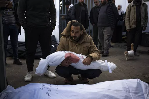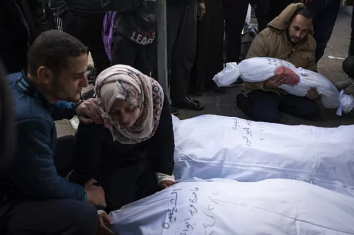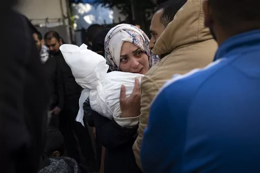 The Al-Aqsa Martyrs hospital in Deir al-Balah says it received 44 bodies after multiple strikes in central Gaza. Associated Press reporters saw the bodies arriving in ambulances and private vehicles. Relatives held funeral prayers in the hospital courtyard early Wednesday.