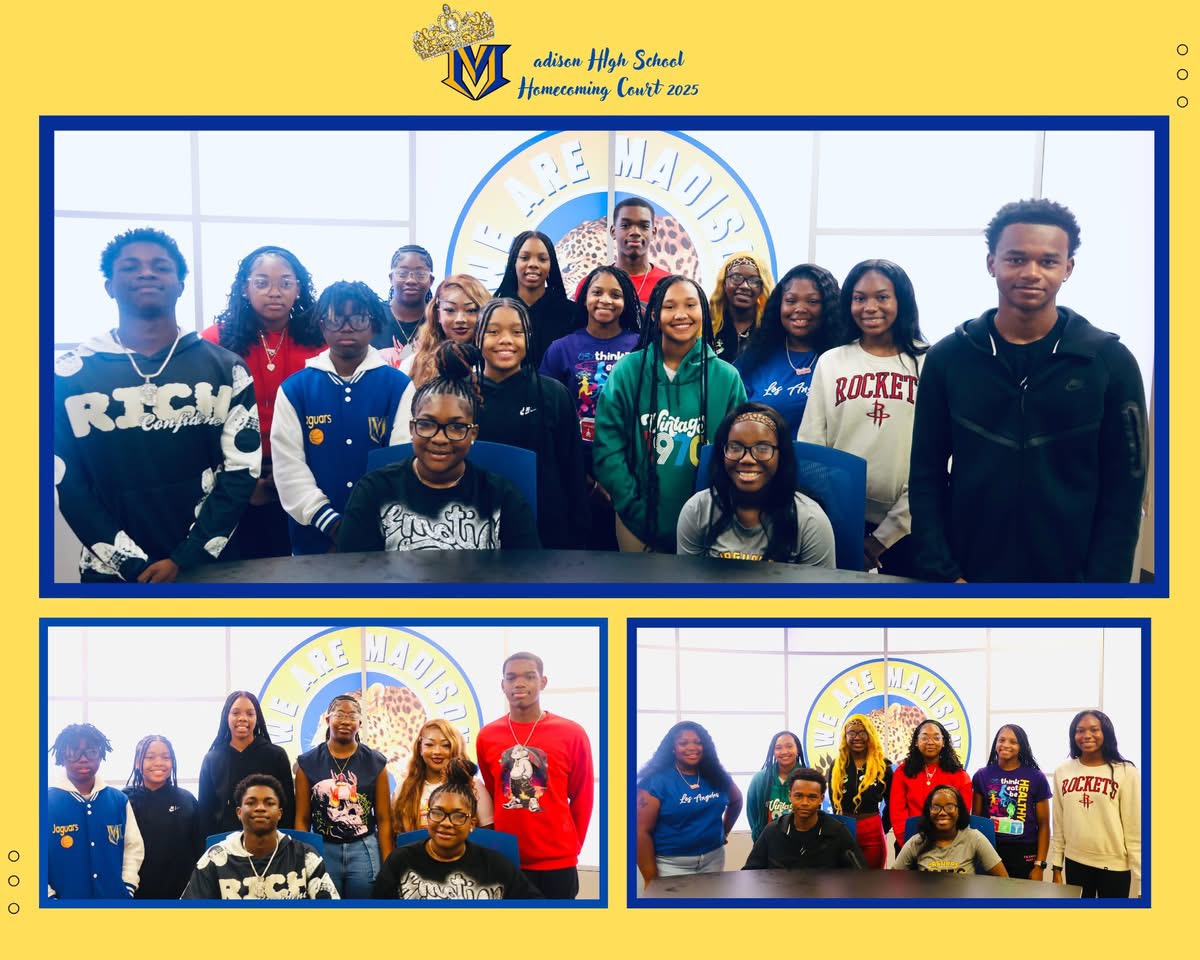 Royal Court: Miss Madison Kennedy Wilmore, Mr. Madison Brendan Campbell, Miss Freshman Jelicia Fountain, Mr. Freshman Car’malace Cammack, Miss Sophomore Joe’Niyah Tillman, Miss Junior Ke’Zaria Carter, Miss Senior Shekinah Hall, and Mr. Senior Joey Tillman.
