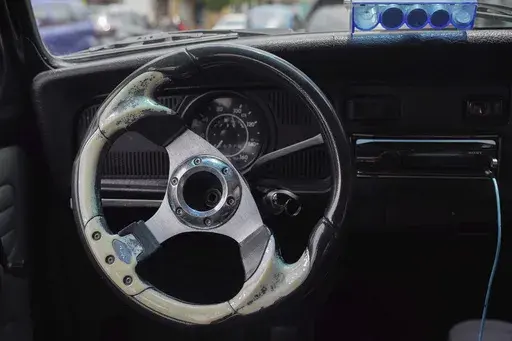 One driver has named his bright blue car “Gualupita” after his wife, Guadalupe, and adorns the bottom with aluminum flames blasting out from a VW logo. Another painted their VW pink and white, sticking pink cat eyes on the front headlights.