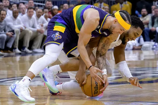 Pelicans: Herb Jones scored 11 points, highlighted by a soaring two-handed dunk in the first half. ... Newly acquired guard Josh Richardson did not arrive in New Orleans in time to play and watched in street clothes. He was acquired in exchange for Devonte' Graham and four second-round picks on Thursday. ... Fell to 20-10 at home in what was their last home game before the All-Star break. ... Fell to 11-14 vs. Eastern Conference teams. ... Shot 47.6% (39 of 82), including 9 of 24 from deep. ... All-Star forward Zion Williamson (right hamstring) missed his 20th straight game. Green said he will also miss New Orleans' last two games before the All-Star Game, from which Williamson was officially scratched earlier in the day.