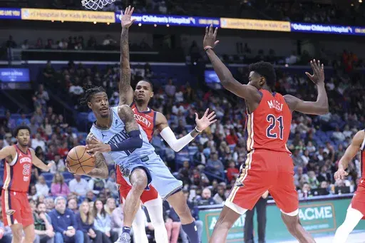 NEW ORLEANS (AP) — Ja Morant stood near the end of the Memphis bench, cheering on his teammates but leaving his right arm hanging below his injured shoulder, as Memphis closed out a 132-124 victory over the Pelicans on Friday night.