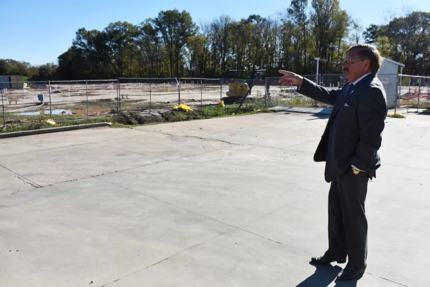 Madison Parish Hospital CEO Dr. Ted Topolewski points out which areas of current construction will house patient rooms, a new emergency room and rural health clinic and other facility components when the new hospital is completed.