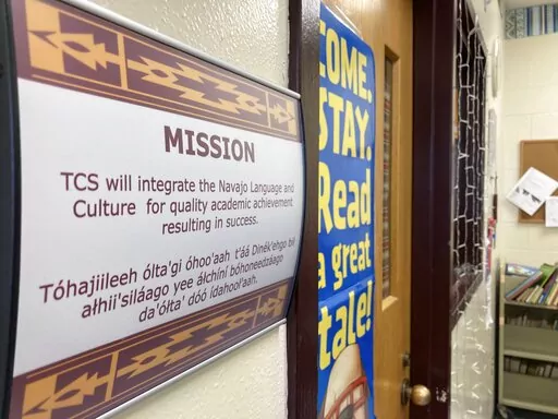 TO'HAJIILEE, N.M. (AP) — A school tucked into the sandstone cliffs and juniper-dotted mesas of central New Mexico is fortified on one side by a wall of sandbags and an earthen berm. On the other side, melting snow puddles along the edges of classrooms.