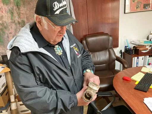 Larry Holman, To'Hajiilee's administrative services specialist, picked up a section of broken bathroom piping that was sitting on a shelf in his office. It was thick with corrosion and had a crack running down one side — more evidence of the condition of plumbing throughout the school.
