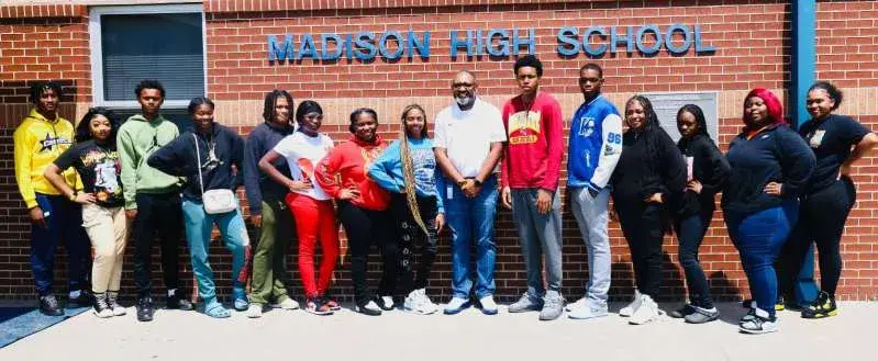 Pictured above is Madison High School’s homecoming court. From left are Mr. Senior Marquis Thomas, Miss Sophomore Calvin Wilson, Mr. Sophomore KeZaria Carter, Mr. Freshman Larry Guy, Jr., Miss Freshman JaKayla Carter, Miss Homecoming Genesis Bell, Miss Madison Chara Atkins, Center Principal Perry Revels, Mr. Madison Dawson Brown, Mr. Homecoming Joey Tillman, Miss Offense Samiyah Sanchez, Miss Defense DreNiria Gathrite, Miss Blue & Gold Maliyah Johnson and Miss Jaguar Jada Salda. Not pictured are Miss Football Sweetheart Miss Senior J'Liyah Thomas and Zyara Mitchell. The Jaguars football team hosts General Trass at 7 p.m. Friday for homecoming.