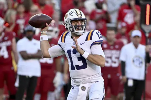 FAYETTEVILLE, Ark. (AP) — Caden Durham ran for 101 yards and three touchdowns, Damian Ramos made a career-best four field goals, and No. 4 LSU handled Arkansas 34-10 on Saturday night.