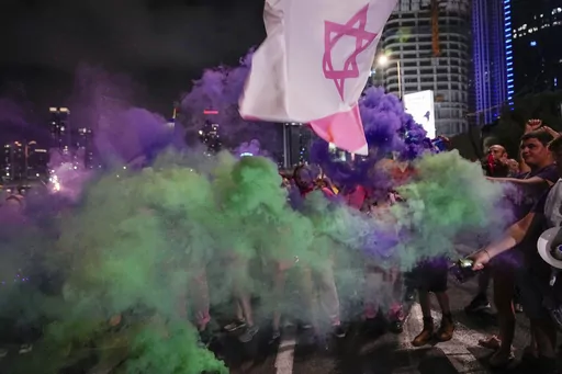 Some 150,000 people thronged central Tel Aviv, with large rallies in Jerusalem and other major cities. Late Saturday, dozens of people attempted to block Tel Aviv's main highway, but they were quickly cleared away by police. Scuffles broke out, and police sprayed a water cannon at the crowd.