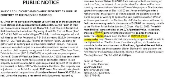 I have been appointed curator for the unopened succession of JB Bailey and Stella Bailey. Anyone knowing the whereabouts of their heirs, please contact Edwin Moberley, Attorney at Law, 607 East Askew Street, Tallulah, LA, or phone (318) 574-3133.