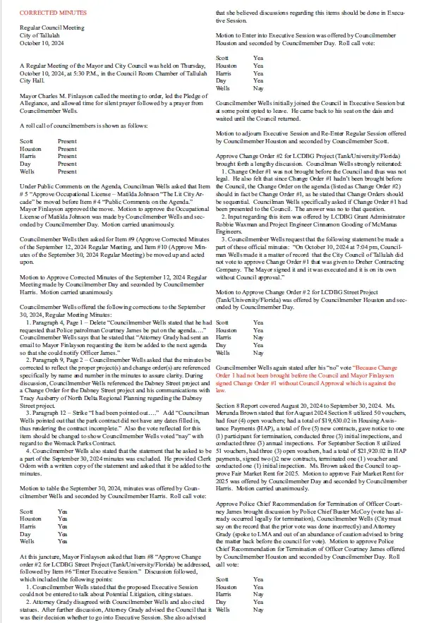 THE CITY COUNCIL OF THE VILLAGE OF DELTA HELD its Regular meeting at Delta City Hall on Tuesday, October 15, 2024. Present were Mayor Ruthann Vercher, Council Members Kathy Davis, Pam Stokes, Stephanie Edleston and Clerk Susan Peterson.