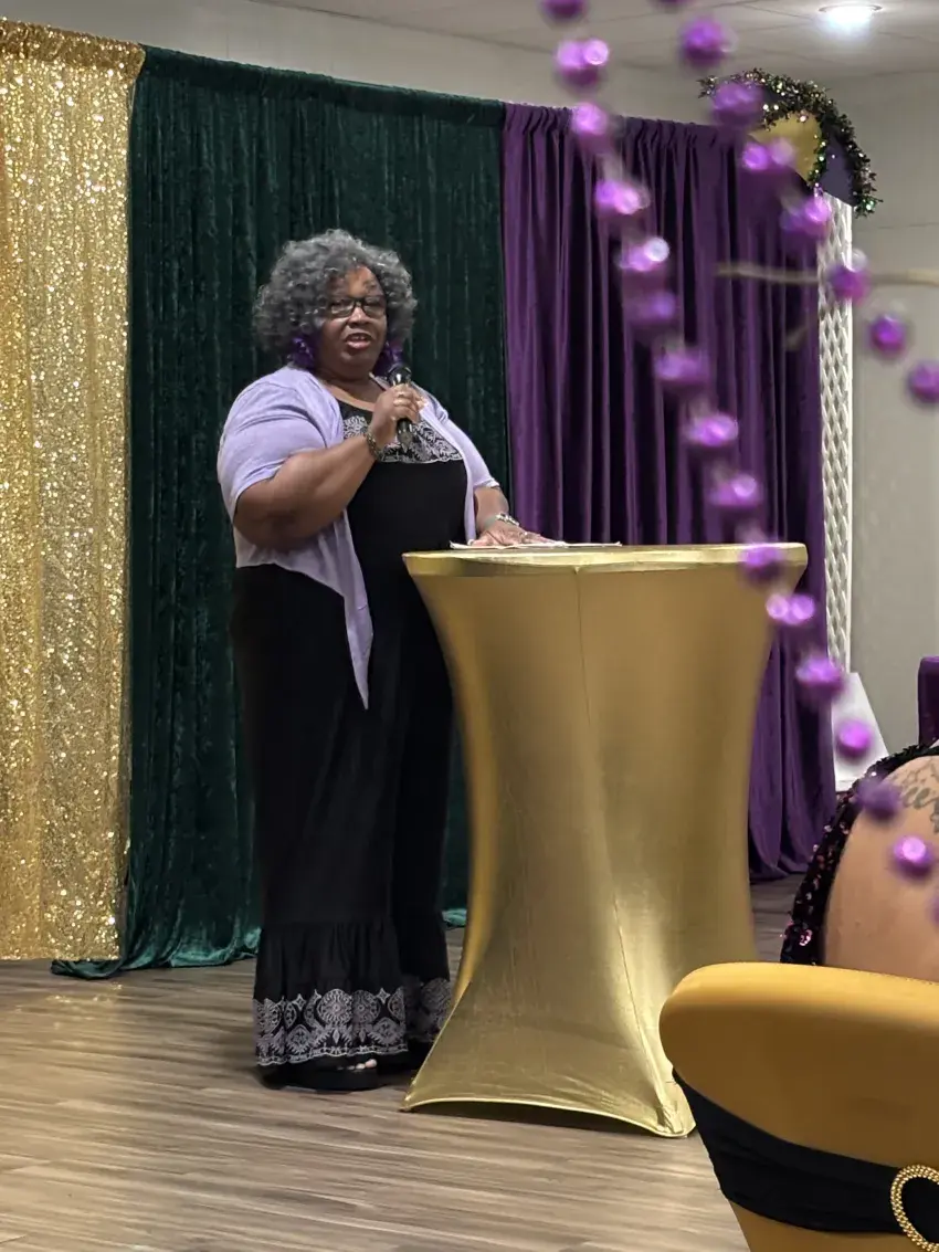 The gala was organized by Monica Stuart, founder of Purple Patches, a community organization that works to raise awareness about domestic violence and provide support for survivors. Stuart created the group after surviving seven years of abuse that nearly took her life.