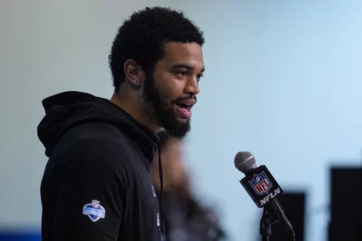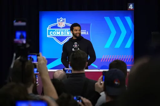 INDIANAPOLIS (AP) — Caleb Williams and Jayden Daniels arrived in Indianapolis as Heisman Trophy winners. Drake Maye is seeking to add to his family's impressive athletic legacy.